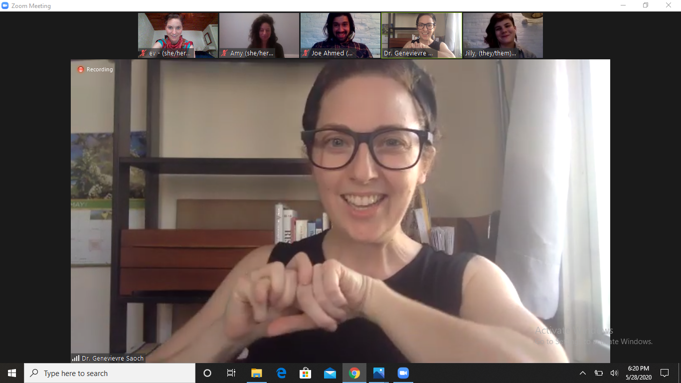 But intimacy can come in many different forms, as O’Loughlin has learned, in her recurring Zoom-based Please Don’t Touch (The Artist) shows which can attract over 100 people. She uses a variety of tools in her performances, including running audience polls, soliciting ideas via the chat window, unmuting folks one at a time to weigh in with their opinions, as well as providing pre-written scripts for them to read as characters in her stories; this level of audience engagement often results in hours long “after parties” where participants can blow off steam and hang out more casually with each other.