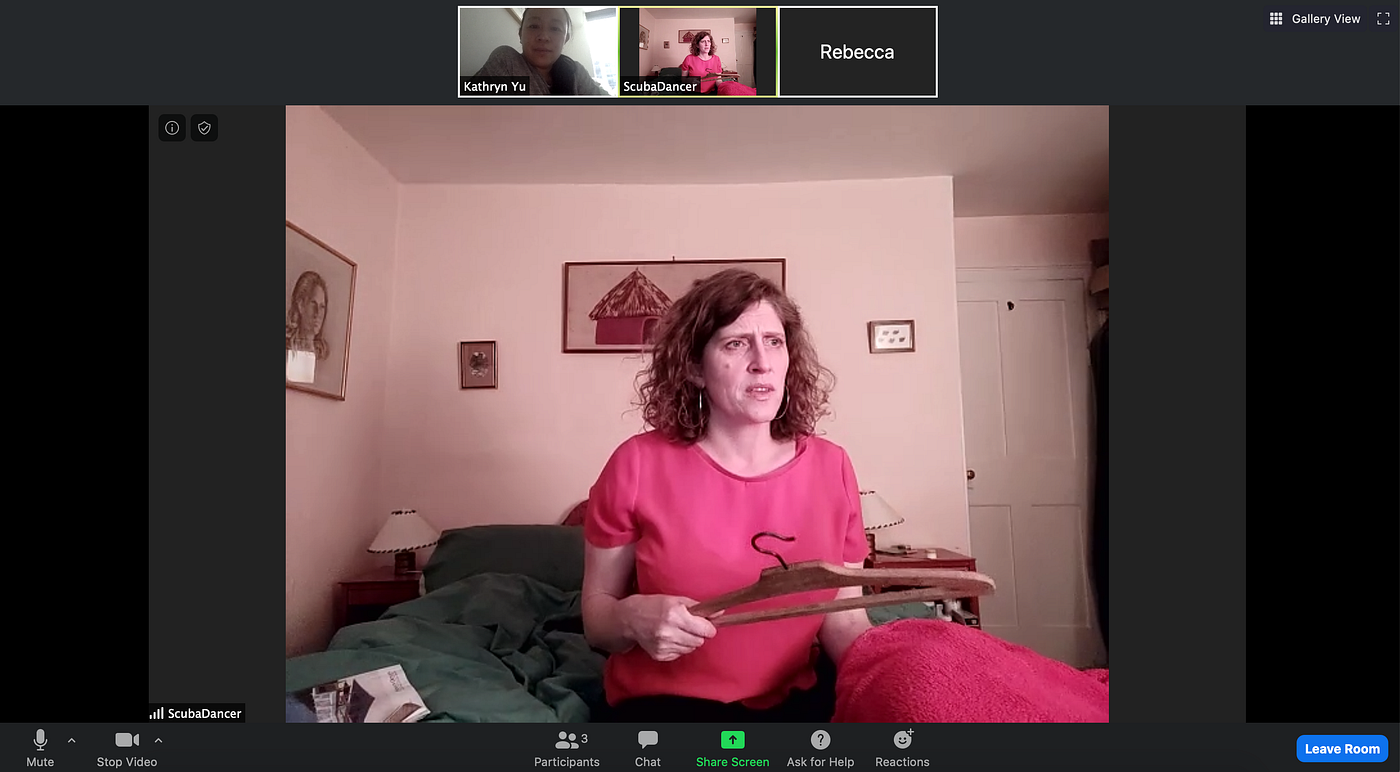 I was also impressed by the performers’ ability to cue the end of each conversation by disabling their webcams and playing thematically appropriate music; the strangeness of abruptly ending a video conference call was greatly changed by their “cut to black” punctuation of the scene before the moderator moves the participant(s) back into the communal Zoom lobby. By really probing what it means to have the viewer act as a “camera,” Long Distance Affair injects some much needed life into Zoom.