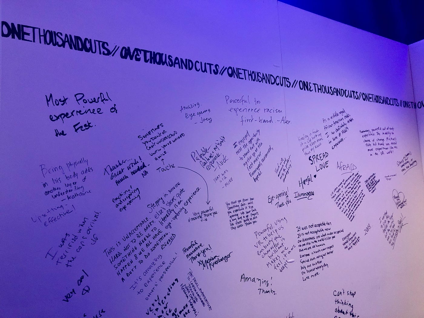 I’m inside 1000 Cut Journey by Stanford Virtual Human Interaction Lab and Cogburn Research Group. 1000 Cut Journey is an interactive experience that plunges participants into the life of a black man named Michael Sterling as he encounters the realities of systemic racism through a series of micro-aggressions: first as a boy, then as a teen, and finally as a grown man.