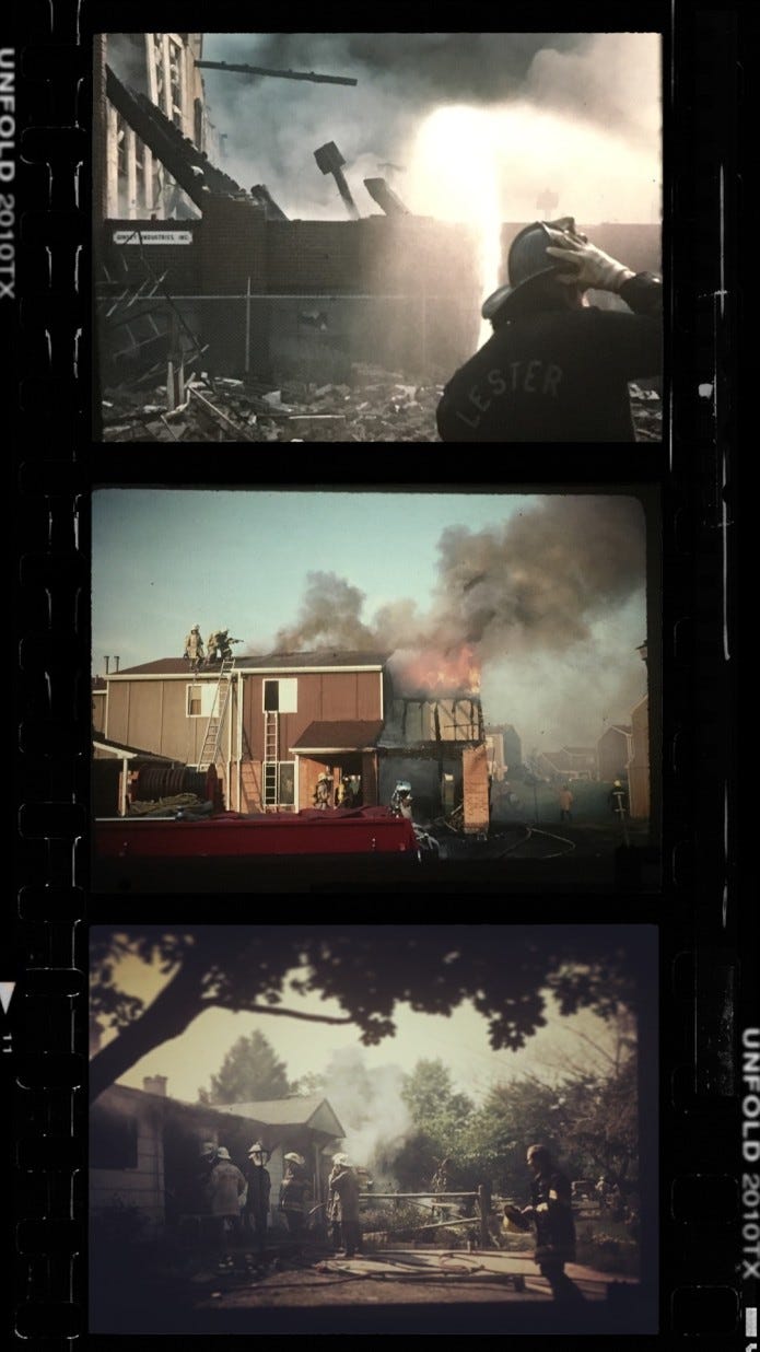 In 1983, Lance Weiler’s family van mysteriously burst into flames on vacation. Eleven months later, his family home would burn to the ground. That suspicious fire somehow burned on two floors at the same time: both upstairs and downstairs. Lance began to suspect that his enigmatic father, Douglas Weiler, a volunteer firefighter and amateur fire scene photographer, might have been involved in the two mysterious blazes from his childhood. And in the months leading up to his father’s death from stage 4 colon cancer, Lance began to ask questions — lots of questions — and recorded his in-depth conversations with his father, as they discussed topics previously never spoken about. These interview recordings have become the basis of the immersive experience Where There’s Smoke, in addition to an interactive set and the thousands of 35mm slides that Lance discovered after his father passed. (His late father was a key collaborator on the project up until his death last year, but never got a chance to see the final product.)