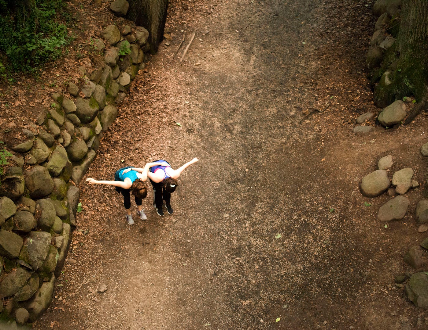 I lose focus for a second while listening to the two exes (Leila and Tag, played by Annette Hammond and Dan Kuan Peeples, respectively) have the same argument three different ways, and suddenly find myself cut off by some unruly vegetation. In one gorgeously choreographed moment, Tag leads our small group to a bridge and motions for us to look down. Suddenly we are overlooking a pair of dancers who sprint and writhe in the valley below us: back and forth, back and forth. Throughout the evening, performers magically run off and reappear, taking full advantage of our limited lines of sight. In Prospect Park, as in life, it’s often hard to see what’s around the bend.