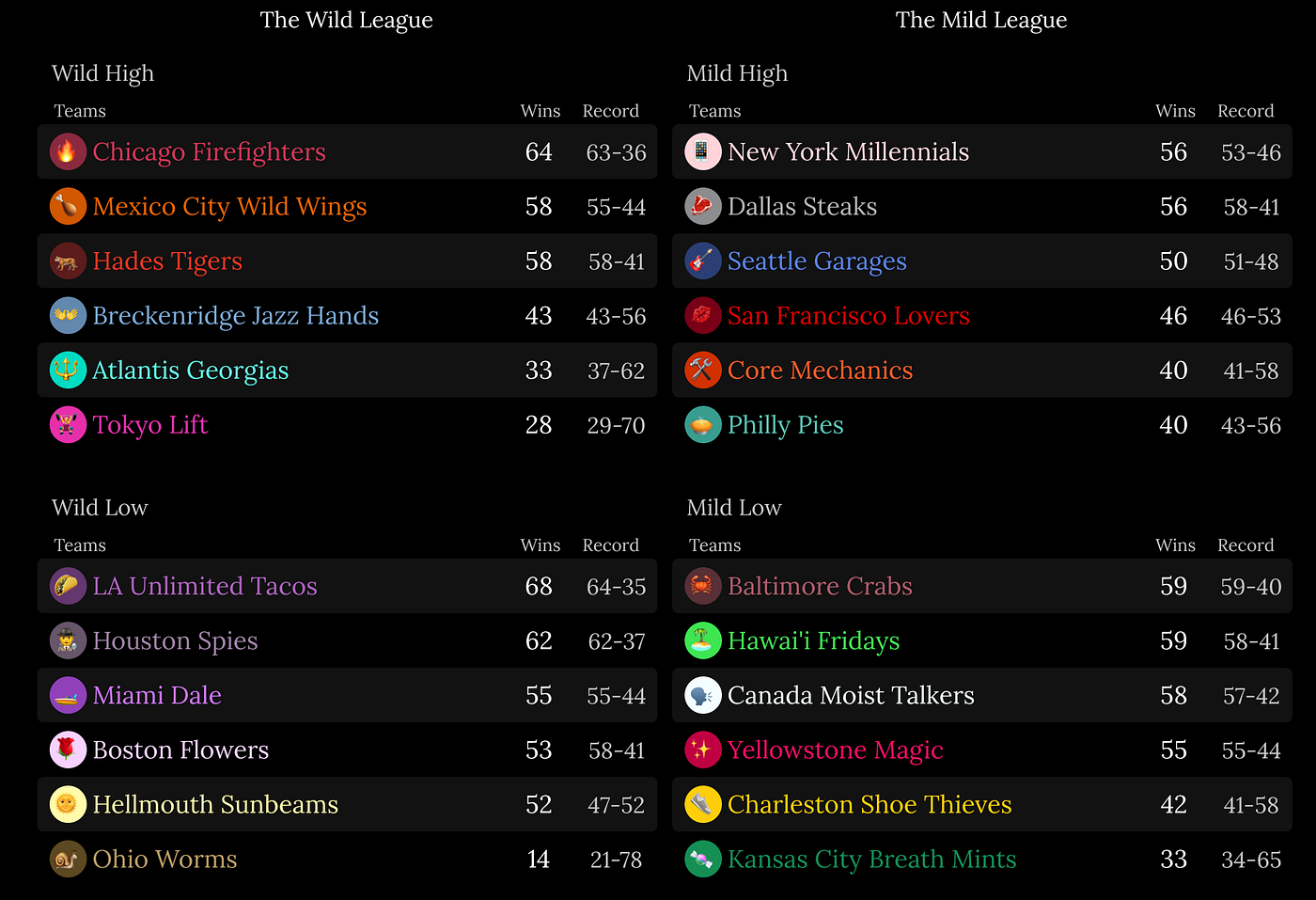 There’s more to it than this summary might suggest (and if you’re looking for a better primer or seasonal recaps, I’d recommend Cat Manning’s fantastic write ups that approach Blaseball as both a sport and a narrative game).