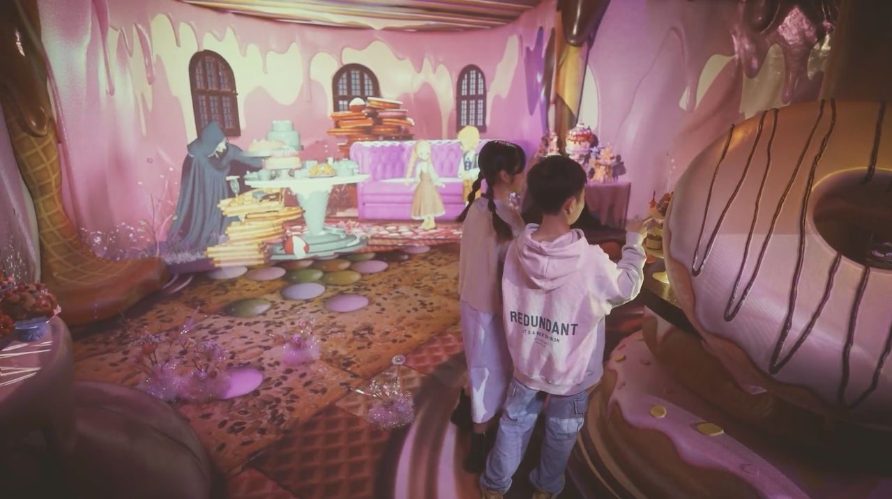 The next attraction we queued up for was an immersive version of Hansel and Gretel, a walk-through storybook featuring projected computer-generated animation and an immersive sound enhanced by set dressing. The attraction offers two courses that cleverly converge at the end, one in which you see the story from the protagonists’ point of view and the one we chose, a reframing of the witch’s story. The visual elements were serviceable if not spectacular, and the story was the familiar story. This would be fine if frightening fare for kids. According to the website, this attraction is also available in English, but I was unaware of that at the time.