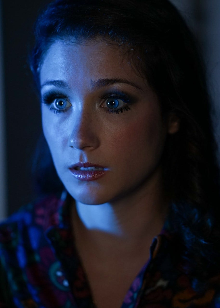 The characters you’ll find here are all are classic tropes, from Anna the ditzy ingenue (Makaela Shealy), to Jimmy the stoned artist (Johnny Pozzi), and Gina the haunted waif (Samantha Lacey Johnson) who seems a little bit too comfortable with the other side. However, the medium Madam Harlow (Dara Kramer) takes the cake, a psychic icon drenched from head to toe in black lace, a monument of Victorian spiritualist artifice. Although the characters are perhaps a little thinly written on their own, all the actors do a game job of fleshing them out in improv, and together, they form a fun tapestry of genre archetypes and period flavor.