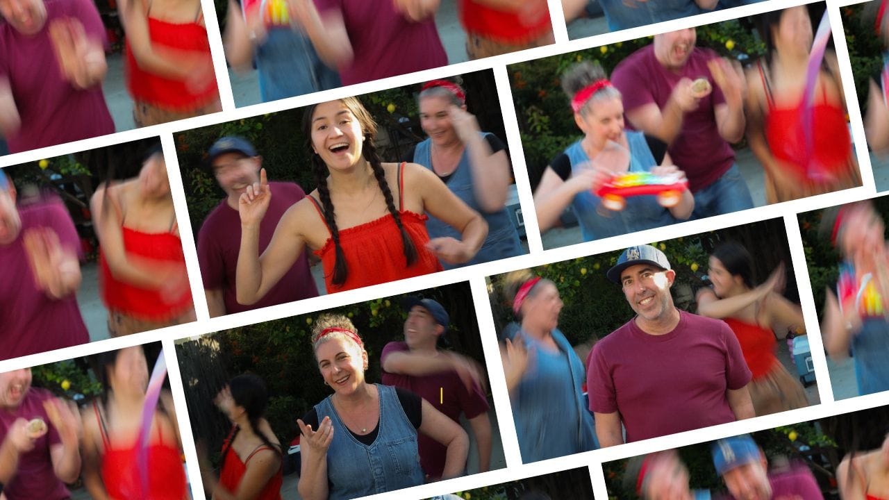 Cleverly, each participant being asked to interact during the performance is simply referred to as “Kiddo,” as we all become stand-ins for the youngest member of the family. The audience gets to flex all manner of physical or creative muscles as we are asked periodically to help steady the wobbly table, or take a beginner movement class, or narrate a nature video on YouTube, or fold socks and launch them into an empty laundry basket serving as a basketball hoop, or help Andy find her phone, which she is constantly losing. These interactions are often happening at the same time in different corners of the room as the performers disperse into the audience.