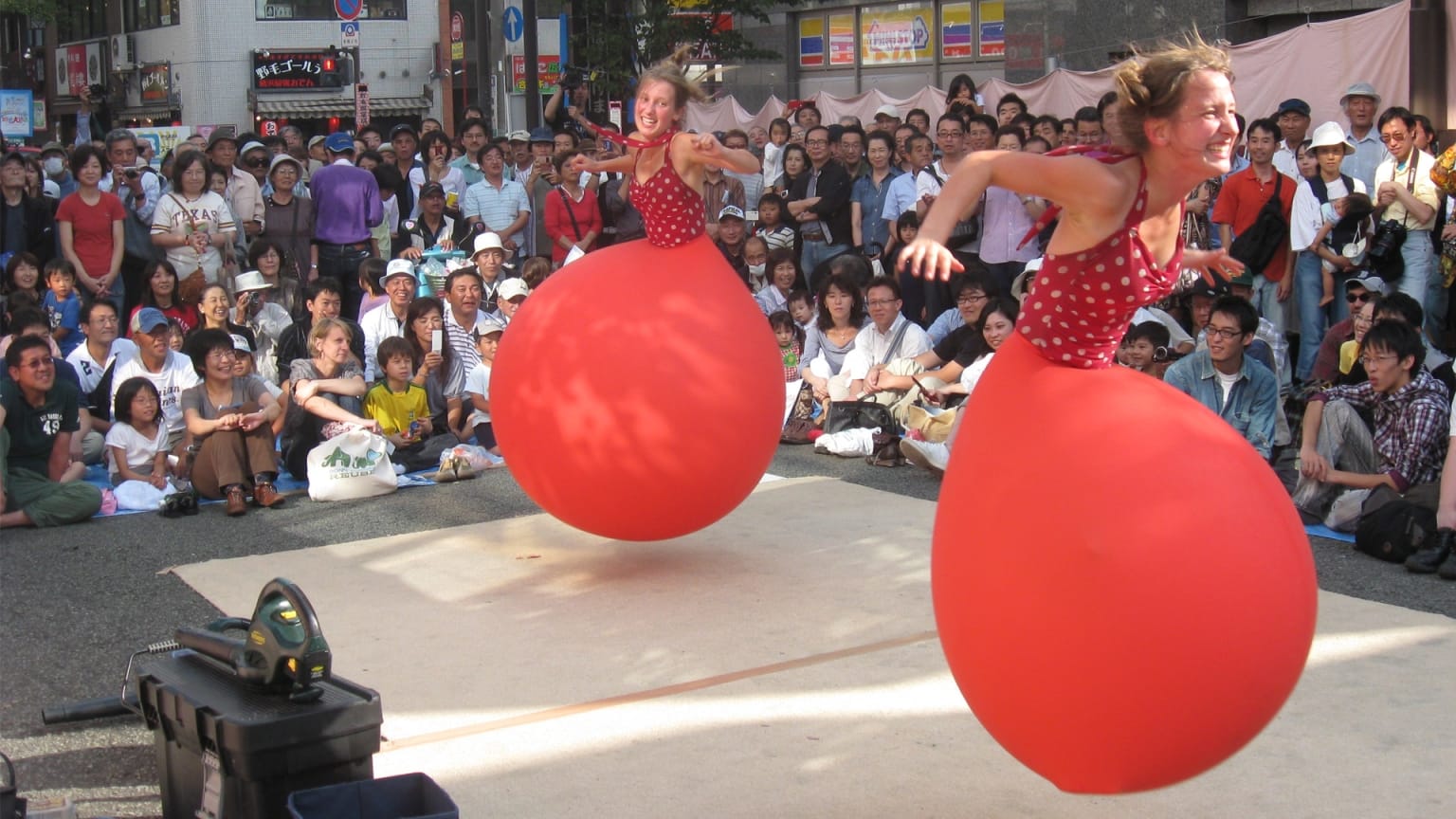 This peaked after the sisters blew up two large pink balloons and put little hats on them, making very distinct boob balloons which they then beachballed into to crowd. Each of the boobs was almost as large as the sisters themselves and far larger than most of the kids. But that didn’t stop one boy from running off with a boob, followed by a dozen and a half other kids of various sizes.