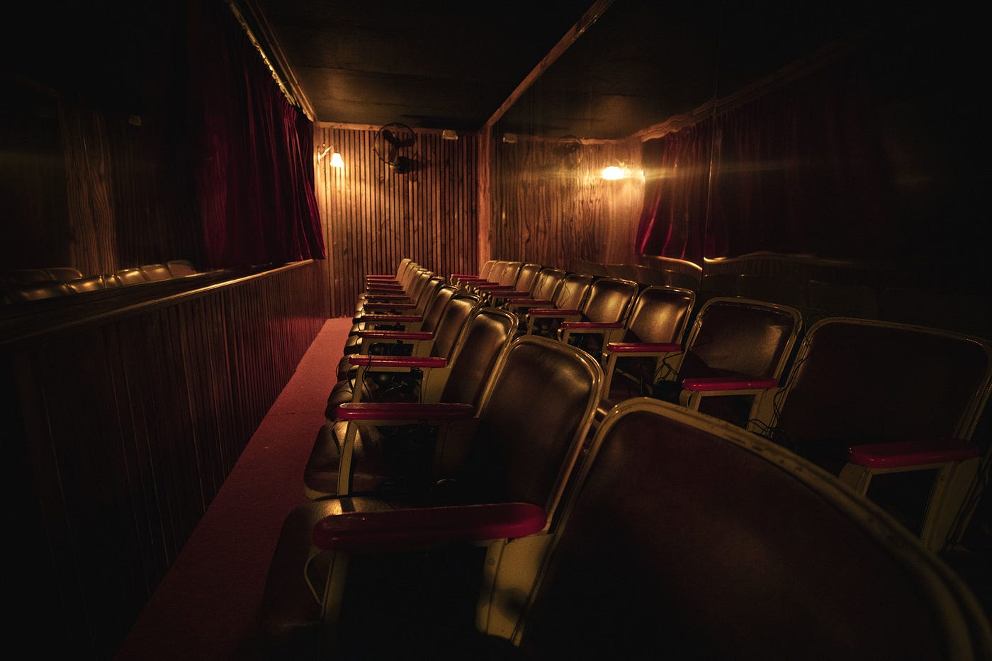 I can feel myself shrinking, trying to become smaller, making my body more defensible. I begin to cry. I’m holding my breath, afraid to make a single move lest I incur his wrath. He continues speaking, inches away from my ear. He’s mean and abusive as he continues his deranged monologue. He makes absurd demands of the others around me. I can almost feel tension in the air. He has full, unbridled command of the theater I stepped into a few minutes ago, a petit venue containing only two rows of seats facing a tiny, curtained off stage.